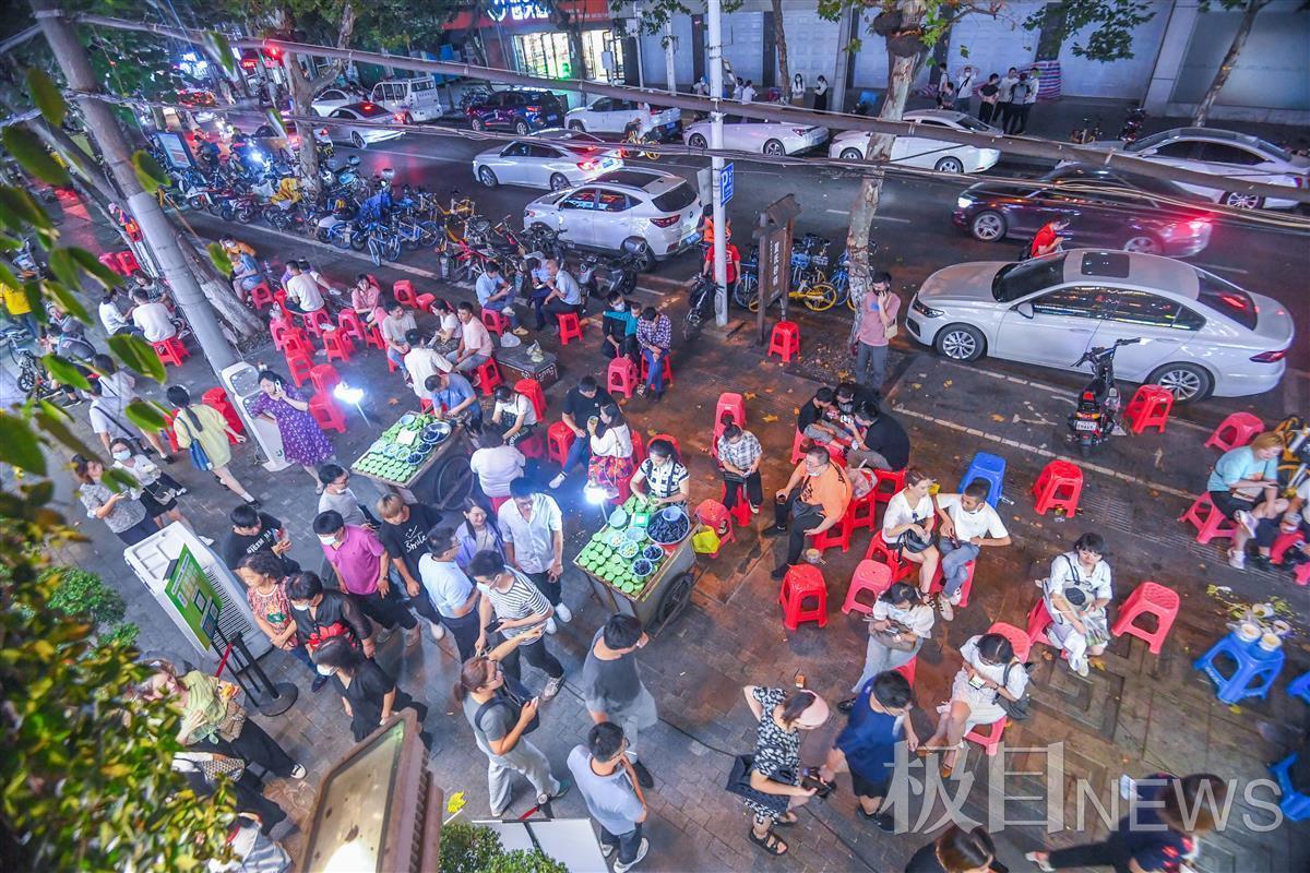 每天傍晚至夜深,万松园美食街的宵夜摊子出街后,各餐厅门口几百个红色塑料高凳是食客等位的标配。餐桌上,小龙虾、香辣蟹、排骨藕汤、烧烤、卤菜已然成为菜品标配。“只有在这个季节,才能将小龙虾和大闸蟹一网打尽。”90后白领小魏说,在万松园街边,就着啤酒吃虾子嗦螃蟹,吹着初秋的微风,别有一番风味。