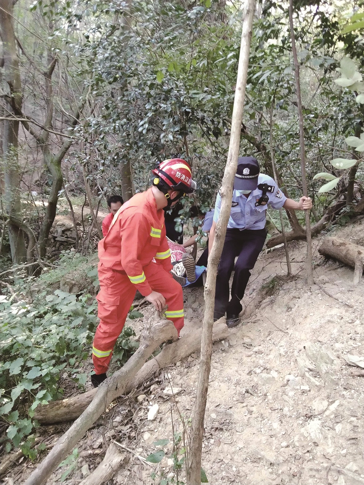 9月29日12时40分,长轩岭街派出所接到报警,6名游客被困在长轩岭街七房湾附近野山中,其中一名女士左脚扭伤无法行动,急需警方救援。长轩岭街派出所民辅警四人带齐搜救装备,成立临时搜救小组,迅速赶至报警地点救援。