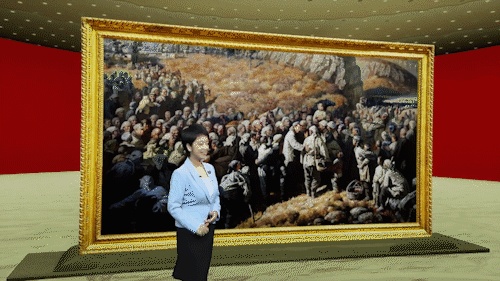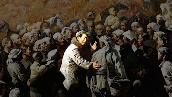 2010年,画家陈承齐根据中共中央离开西柏坡,临行前当地群众前来送行的历史场景,创作了油画《进京赶考》。