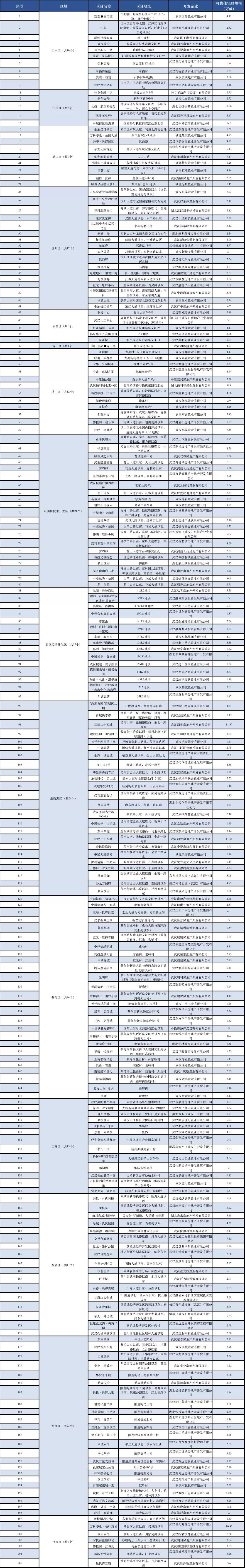 从项目来看,面积最大的项目是新洲区城投·东方上府(44.02万平方米)、江汉区中城信达后湖里(14.1万平方米)、东西湖区金辉·世界城(11.9万平方米)。