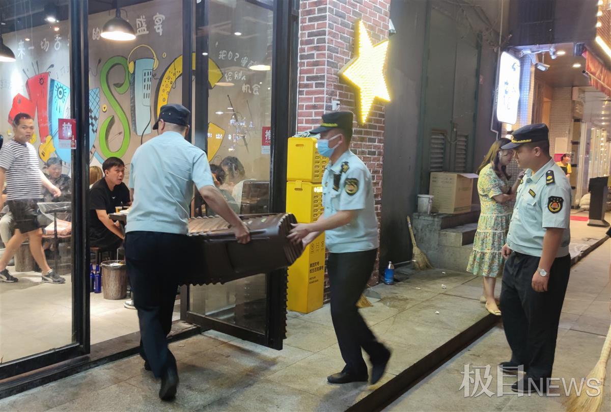 蔡甸区城管执法队员和公安、市场监管等部门联合行动,对蔡甸街、中法城和蔡甸经济开发区(奓山街)等3个片区重点区域的店外占道经营、夜市排档、流动摊贩、乱停乱放等行为,进行有针对性的宣传教育和引导劝离,整治违法占道经营摊点60余个。