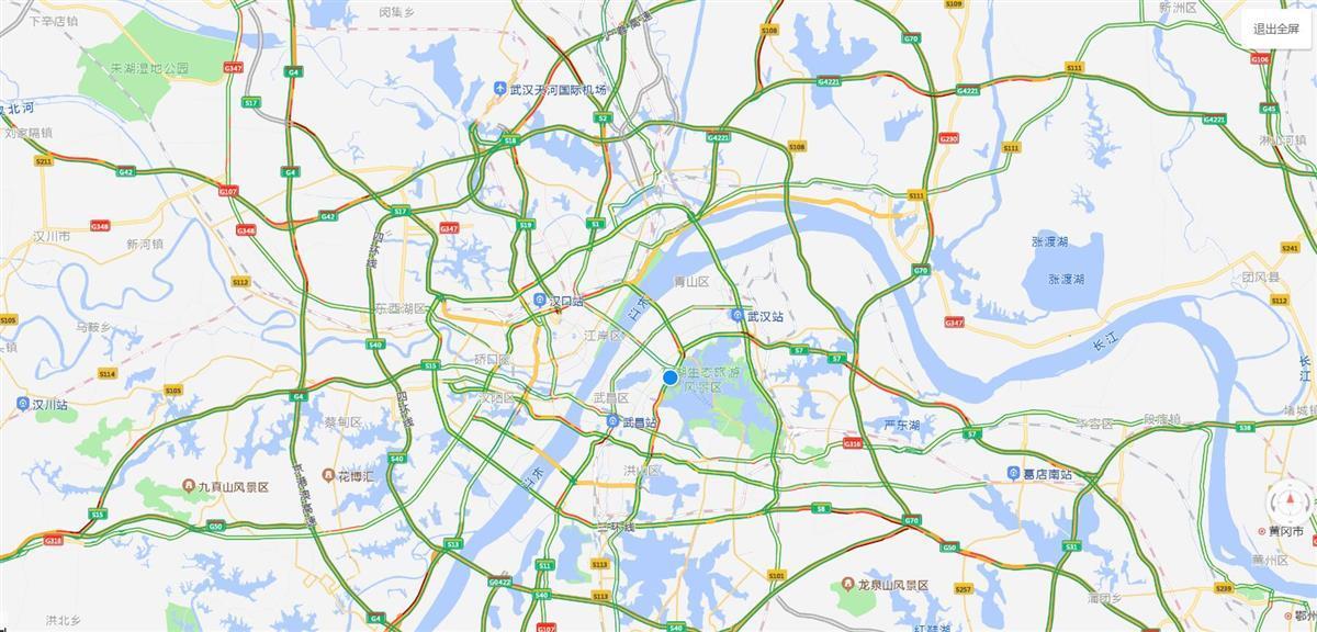 沪武高速武汉四环线互通至武麻高速互通出城方向十分拥堵