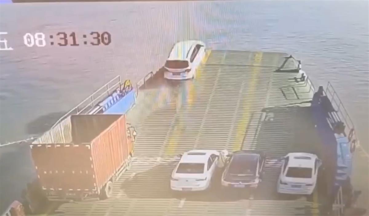 现场监控视频显示,10月1日上午8时30分许,在其余车辆减速登船时,一辆白色汽车高速登船,从船一头驶向另一头,经过甲板冲入江中。另一段视频显示,当地有关部门正在对掉江车辆和人员施救,车辆已被打捞上岸。