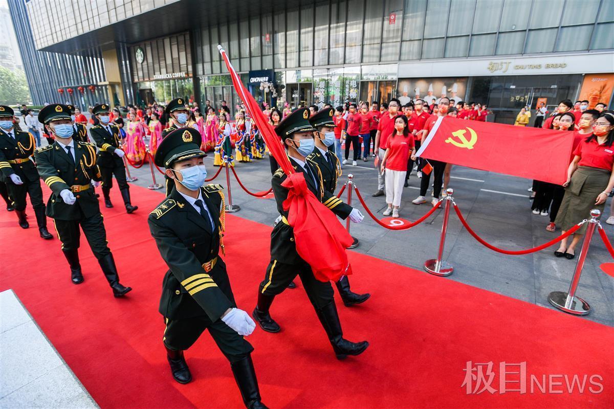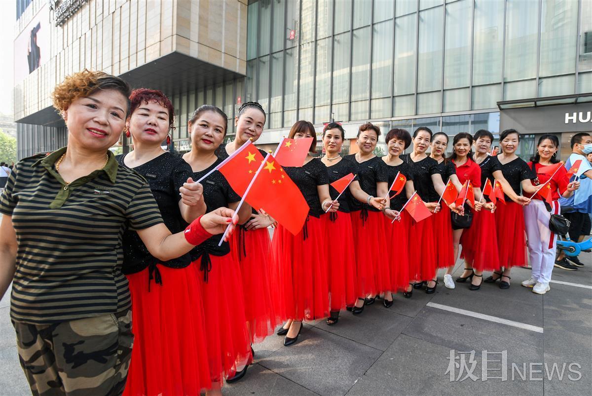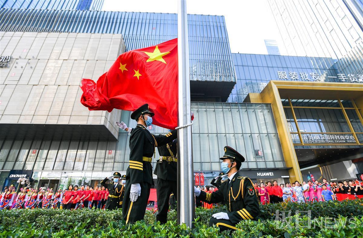 10月1日早上9时,汉正街某时尚中心中山大道广场上,一场别开生面的升国旗仪式正在举行。