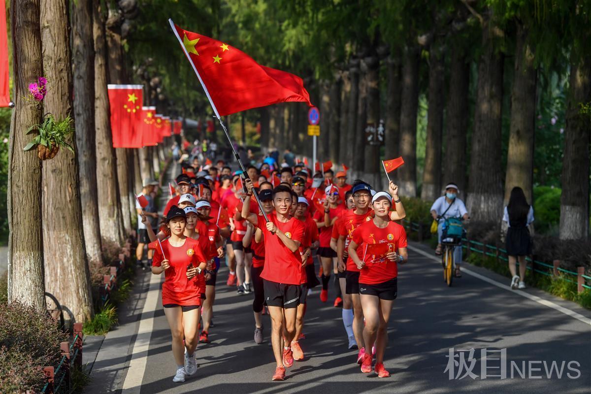 72名成员一身红装齐聚东湖绿道健康跑共庆祖国72岁华诞