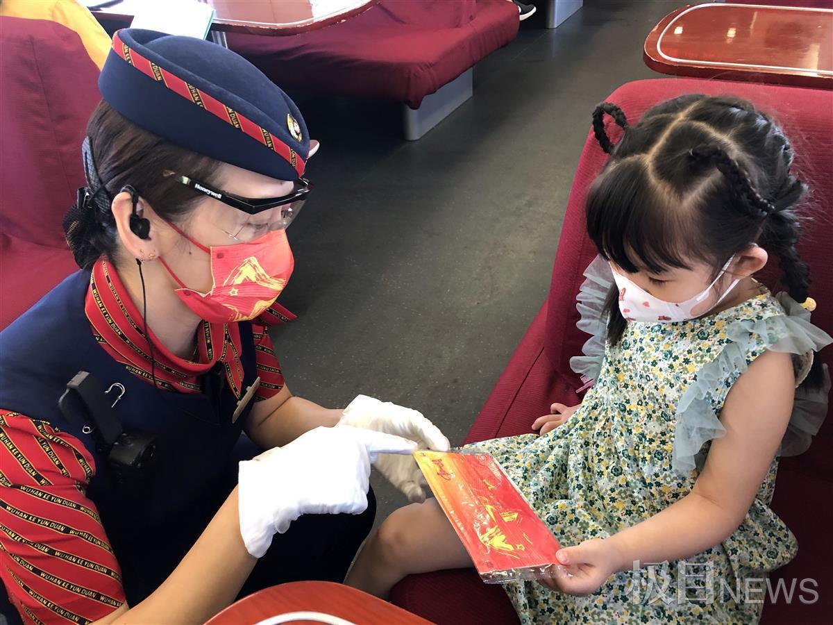 “祝愿祖国繁荣昌盛,人民幸福安康……”10月1日上午9时,在宜昌东开往深圳北的G1034次列车车厢内,中国铁路武汉局集团有限公司武汉客运段南线动车组车间NG45组列车工作人员盛情邀请旅客参加“欢度国庆”的活动,并将精心准备的“中国红”色调口罩赠予旅客,一同喜迎国庆,表达对祖国的热爱和祝福!旅客李先生说:“能在高铁上度过国庆,没想到还有惊喜,能与‘中国红’同框,为祖国送祝福,让我们一家人特别开心!”