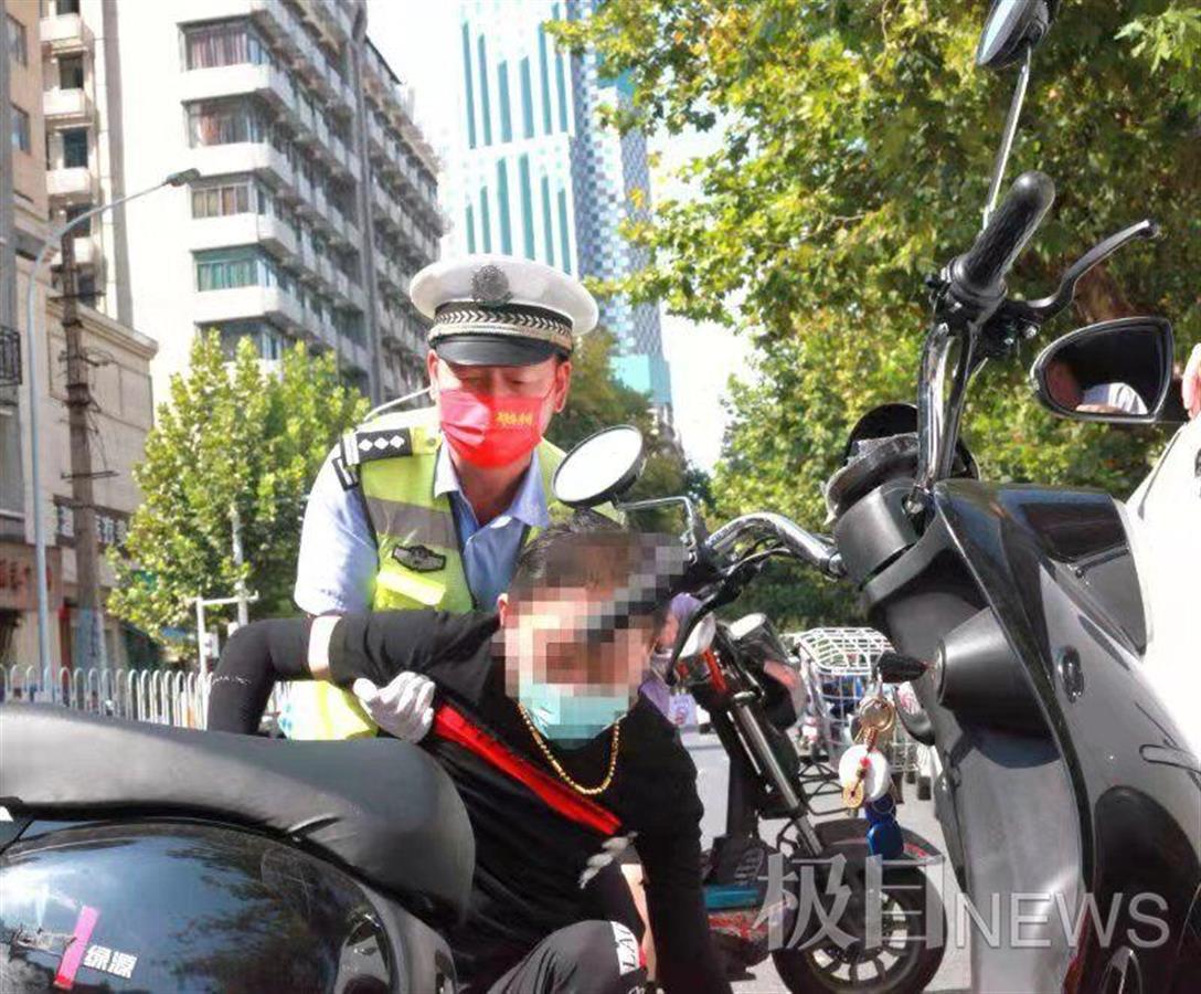 今年53岁的吴冬兵是硚口区交通大队民警,至今有25个国庆节是在岗位上度过的。8时许,他特意带上中国红颜色的口罩来到岗位上,引导过往行人、车辆有序通行。12时30分许,一中年男子骑电动车不慎摔倒,吴冬兵立即跑过去,帮忙扶起电动车。查看男子伤情并无大碍后,吴冬兵叮嘱他控制行车速度,注意安全。