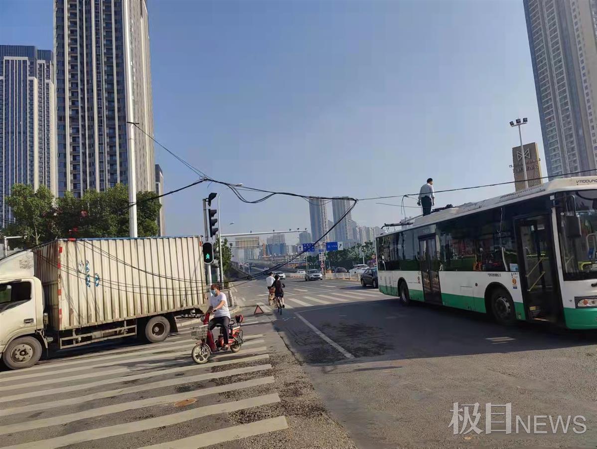 10月1日上午8时45分,武汉市洪山区交通大队接到群众报警,丁字桥南路张黄新村路口有电线脱落,影响过往车辆通行。
