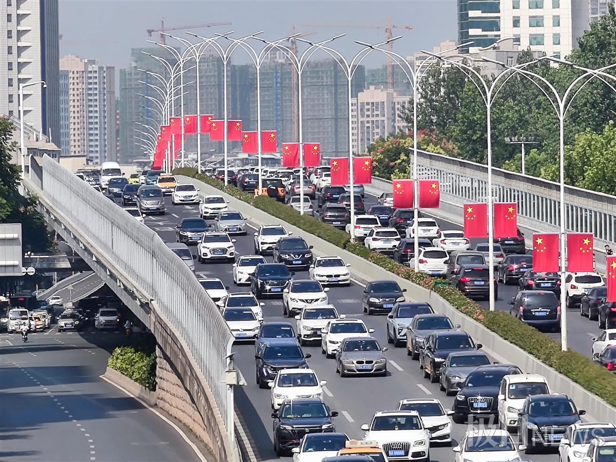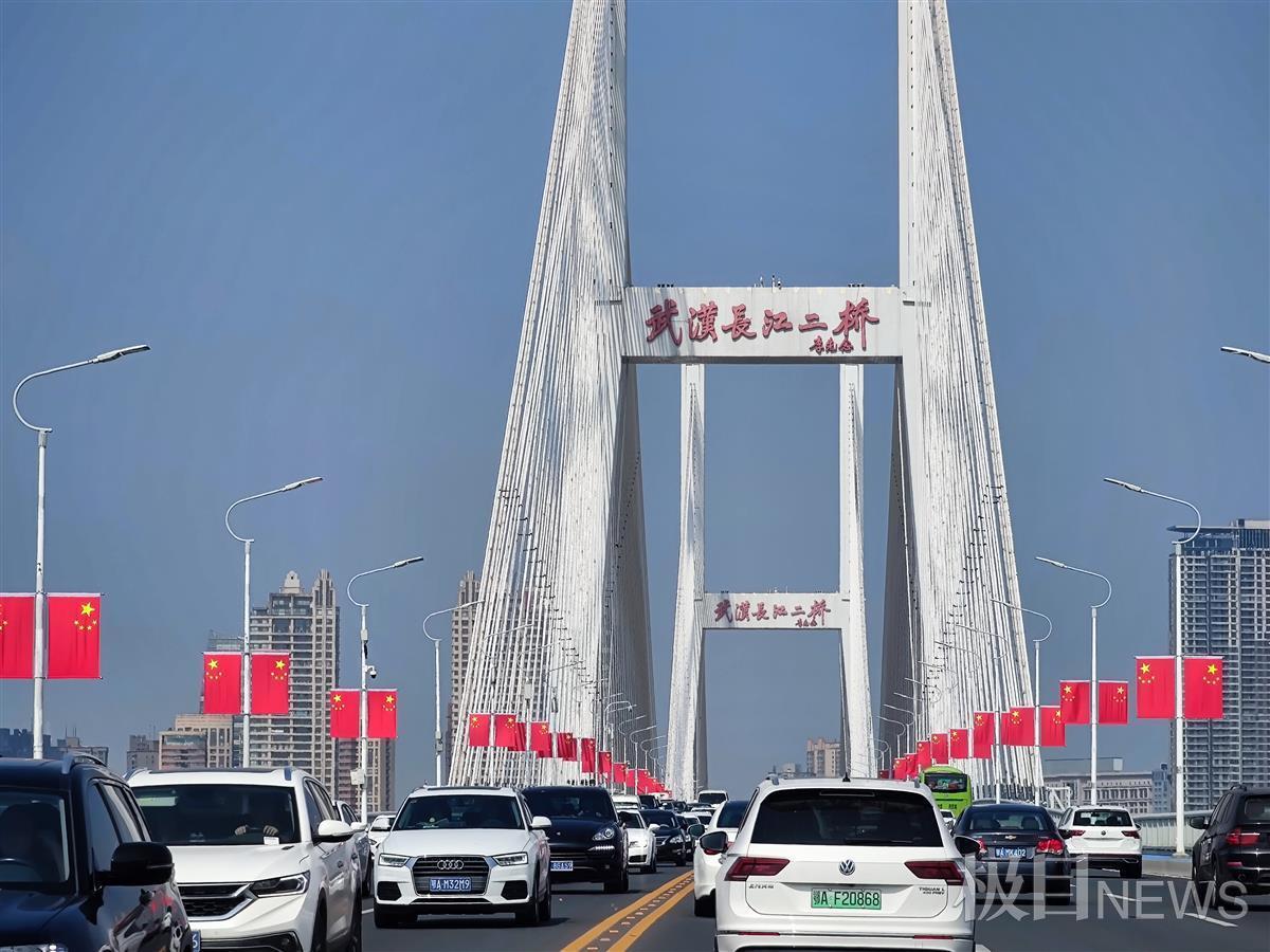 10万面五星红旗挂上武汉街头,居民小区、高架桥上,全市主要干道、重要窗口区域和桥梁一路飘“红”,处处洋溢着喜庆、祥和、热烈的节日氛围。