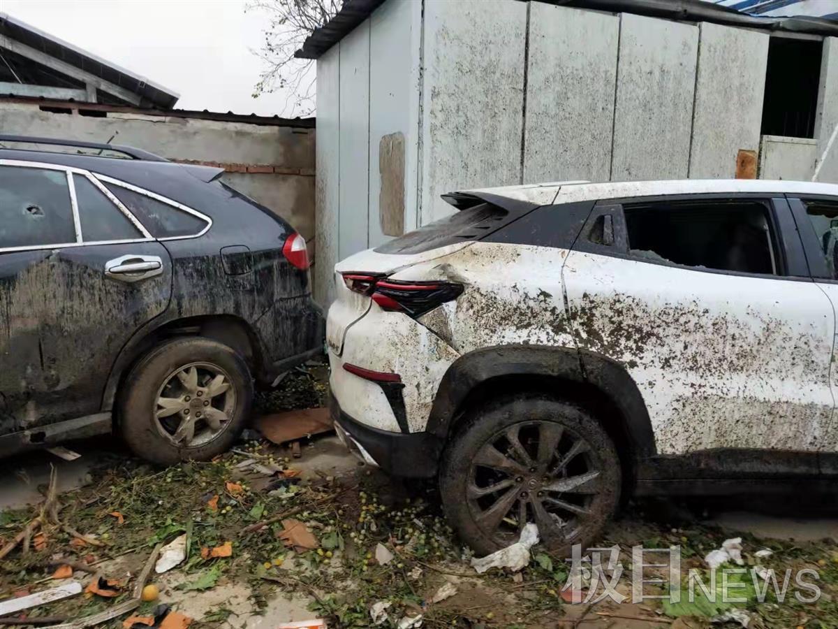 村民的车窗玻璃被大风刮起的杂物击碎
