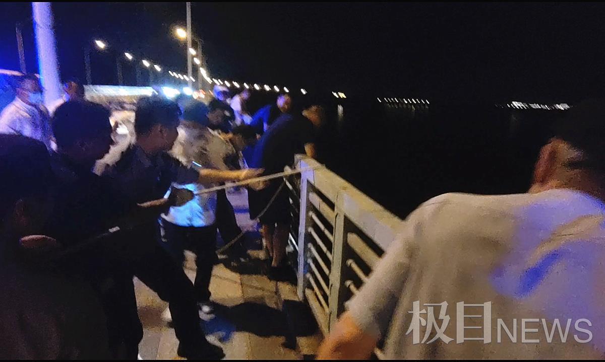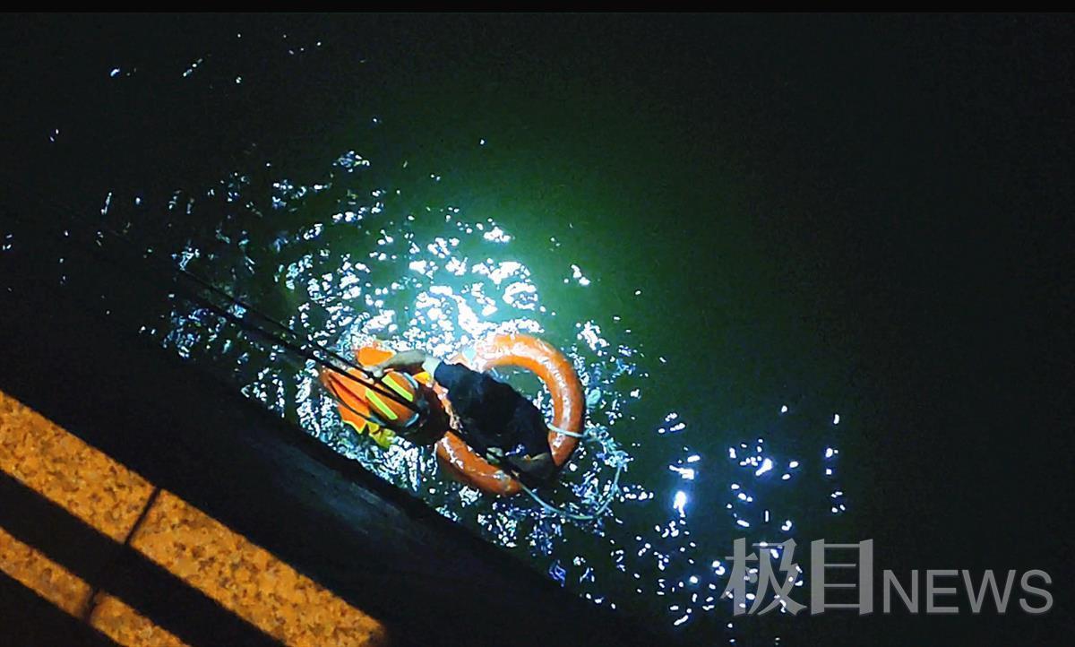 消防员在到达水面后,利用随身携带的安全绳将落水男子固定并做好安全防护,由于水面没有受力点,消防员将该男子用力托举出水面,岸上的消防员、民警、热心群众齐心协力,利用安全绳将男子慢慢拉起至桥面。