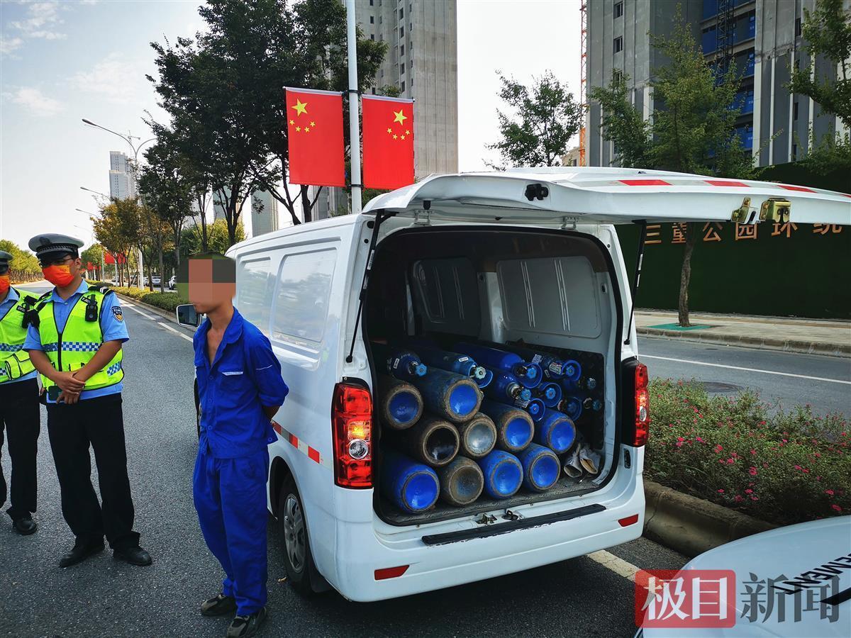 上午10时左右,在军山设法山路,执法人员查获一辆违规载运医用氧气的车辆,该车涉嫌超载和不按规定运输危险化学品气体。