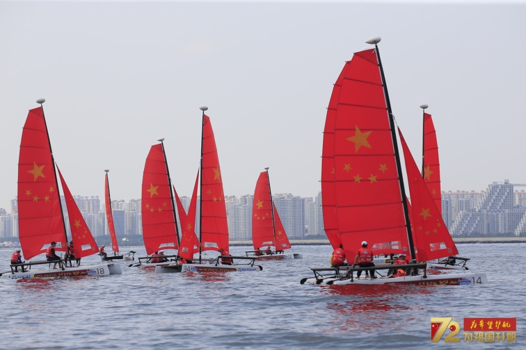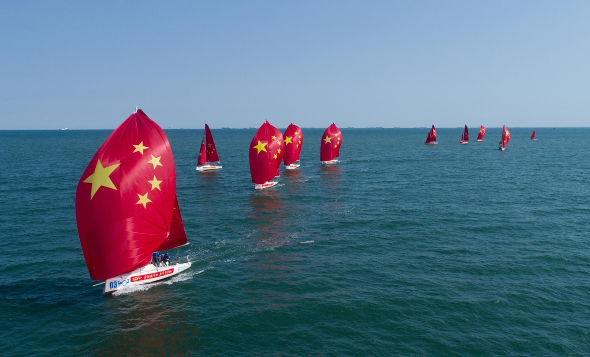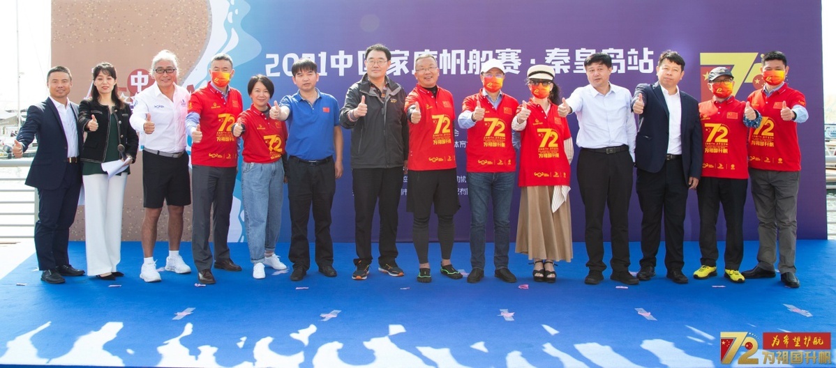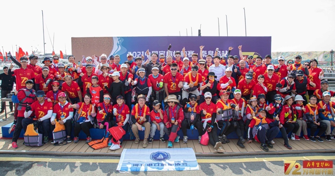 中国日报10月2日电 10月2日,2021中国家庭帆船赛秦皇岛站比赛在秦皇岛国际旅游港正式开赛。时逢中国共产党成立100周年和中华人民共和国成立72周年,本站比赛开幕首日进行了为祖国升帆活动,近百组来自祖国大江南北的家庭,共计超300名选手参加。一面面船帆迎风起,一艘艘帆船破浪行。由50艘HobieGetaway双体帆船、20艘珐伊28R级帆船、两艘OP级帆船组成的72艘巡游船队在秦皇岛国际旅游港海面,用航海人最高礼节——“升帆”为祖国庆生。