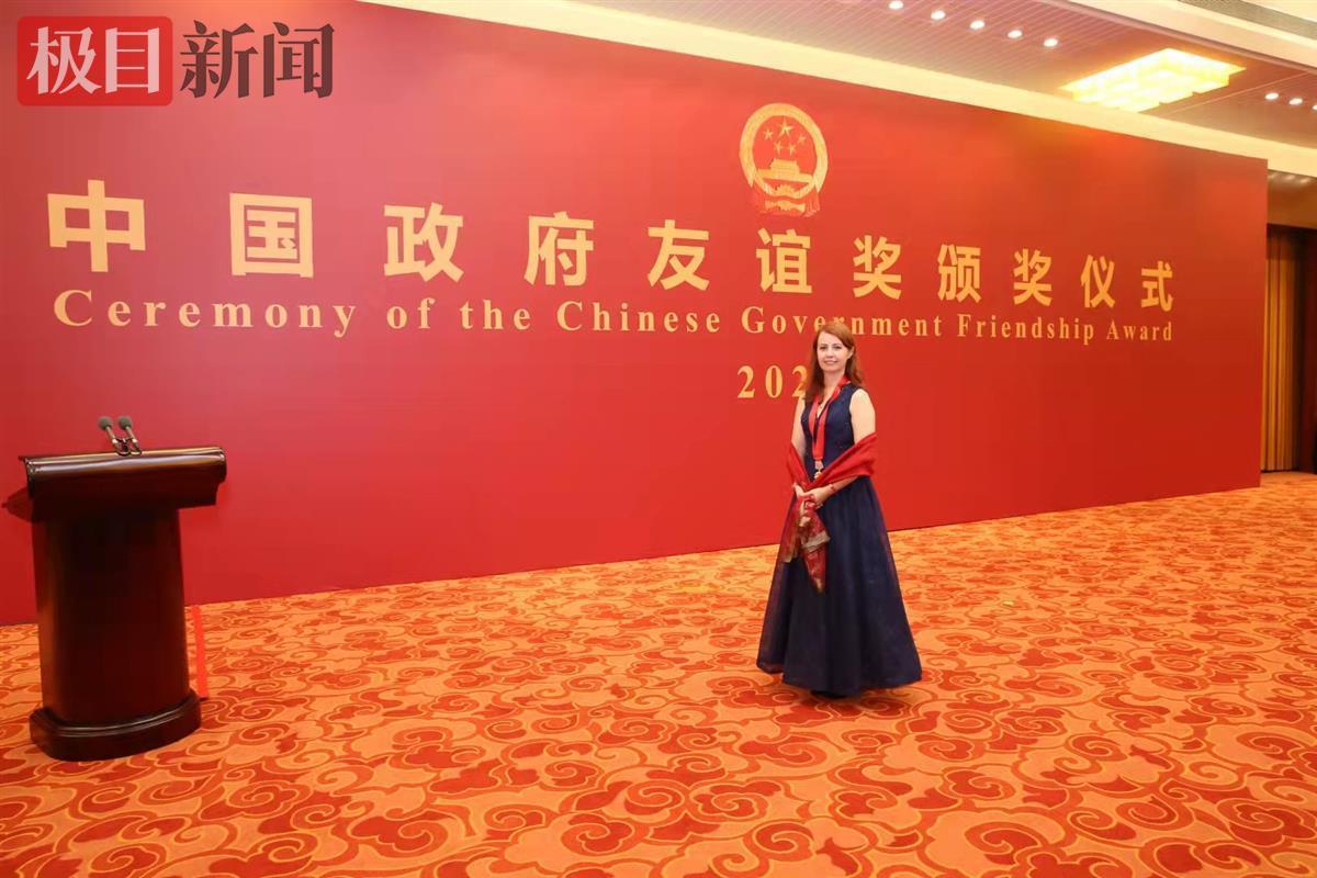 她告诉极目新闻记者,9月30日,她参加了在北京举行的中国政府友谊奖颁奖仪式。包括她在内的来自32个国家的100位外国专家荣获2020、2021年度中国政府友谊奖。国务院总理李克强在人民大会堂会见了获奖外国专家们。此后,她还受邀参加了国宴,并接受国家最高领导人的亲切接见。