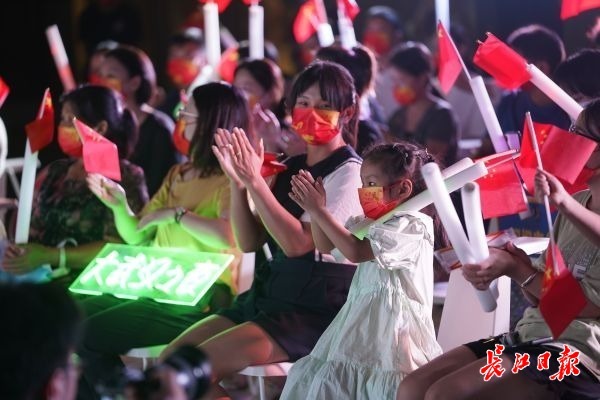 长江日报大武汉客户端10月2日讯(记者沈欣)“现在中国变得很强大,听着这些歌曲,都觉得特别自豪!”2日晚,带着全家人从汉口黄浦路赶来“大武汉之夜”音乐会现场的党员刘芳说。