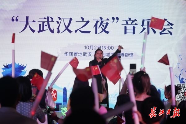 《我和我的祖国》作为“大武汉之夜”音乐会开场曲,音乐人甲鱼声线婉转,声音灵动,一首歌唱出对祖国的浪漫表达和无限眷恋。现场观众挥舞手中的国旗,一起跟着轻和。