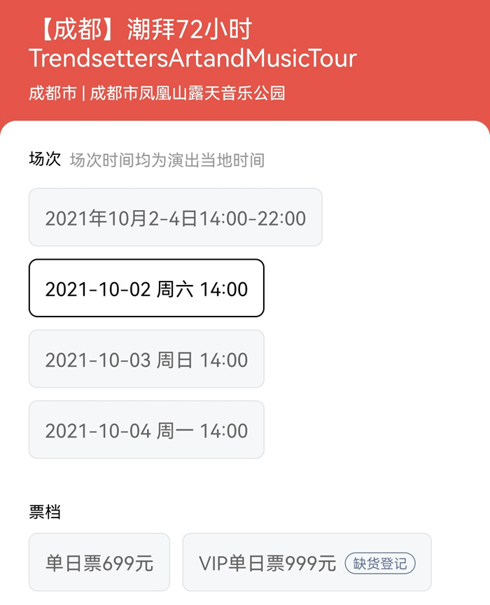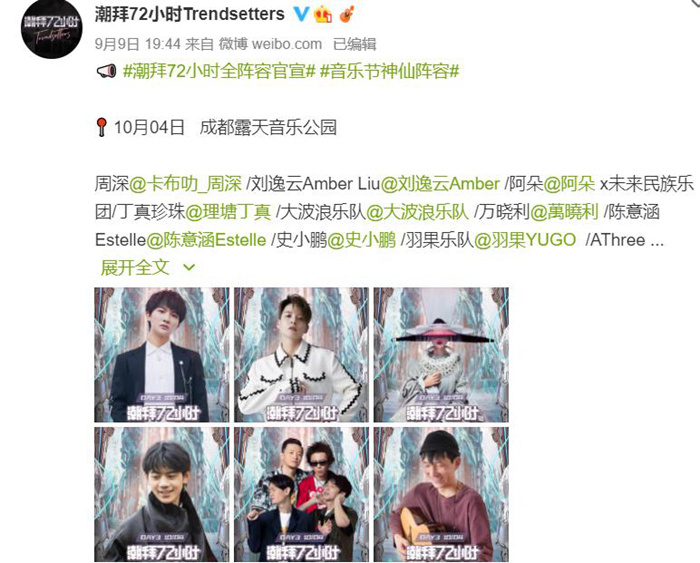 而另一个在成都举办的潮拜72小时音乐节,邀请到王嘉尔PANTHEPACK、周深、刘宪华、白举纲、欧阳靖、丁真等嘉宾,其单日票价也已达到699、999元。