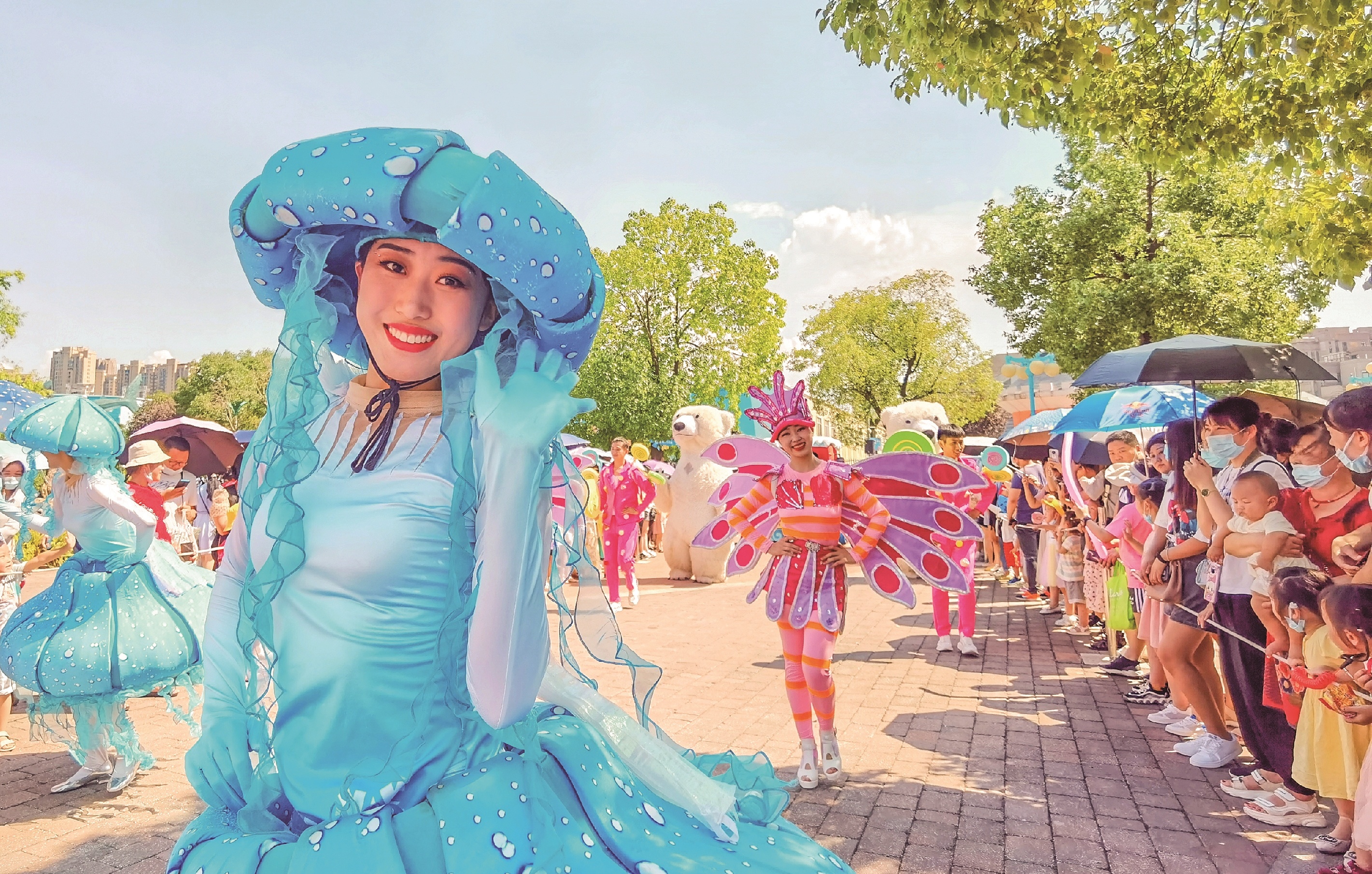 昨日武汉最高温达34℃,在海昌极地海洋公园,众多游客依旧热情不减,与园内演艺人员互动。据预报,今明两日武汉晴热依旧,最高温将达37℃。楚天都市报极目新闻记者李辉 通讯员袁杰摄