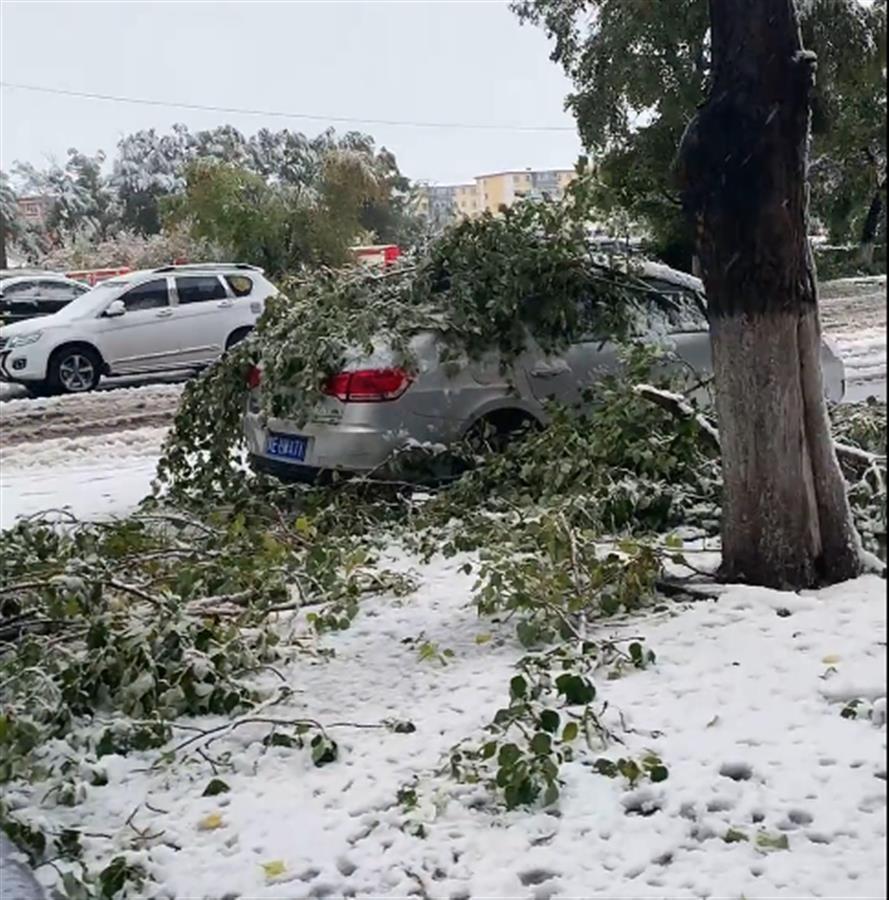 呼伦贝尔牙克石市民宫先生称,雪是从半夜开始下的,一直下到3日早晨才停。“雪花漫天飞舞,当时风也特别大。现在雪停了,目前温度在零下2度左右。”宫先生说,3日早晨起来一看,停在门口的七八台车全被吹断的树枝给砸了,车玻璃虽然没破,但车身都砸出了坑。