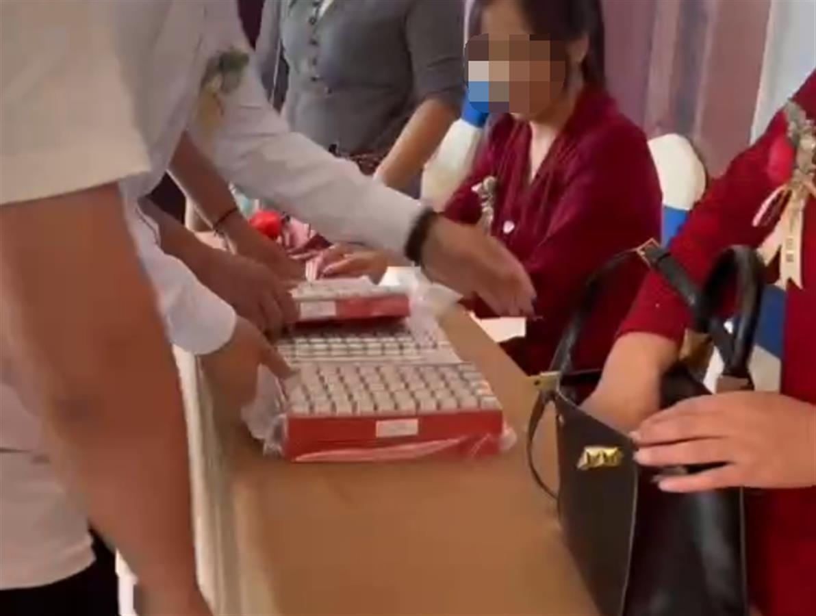 3日,王先生的妻子孙女士告诉极目新闻记者,那场婚礼上送硬币的不止他们一家,而是三家。她丈夫和两位朋友各准备了1000枚1元硬币,他们特意提前10天兑换,并买了盒子整理好,最后借用邻居家的真空包装机封装起来。