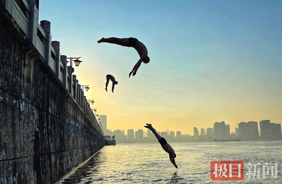 10月4日,武汉,“秋老虎”当头,连续多日高温不下,看到江边游泳的冬泳队队员和乘凉的市民,让人仿佛一下回到了夏季。