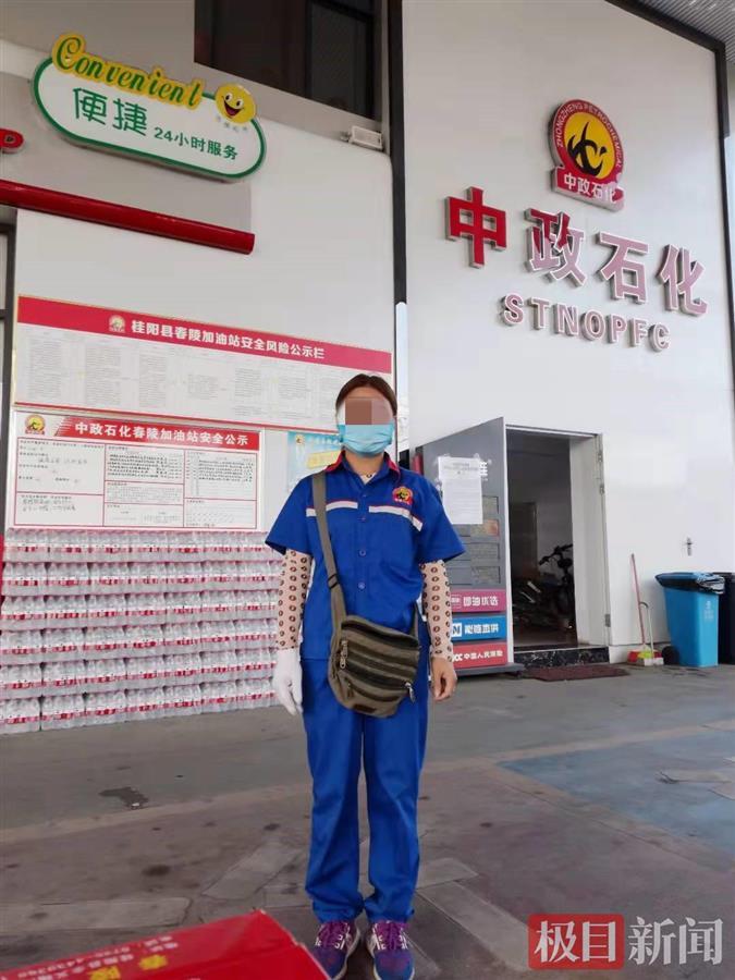 朱女士:3号早上8点多的时候,我在加油站上班,我看到那个男的抱着一个孩子,感觉孩子跟寻人启事里有点像,但不是很确定。等过了一会,那个男的可能是不认识路,又牵着小孩折返回来,我叫来同事,一起看看孩子,又反复对比看手机里的照片,就很确定了。