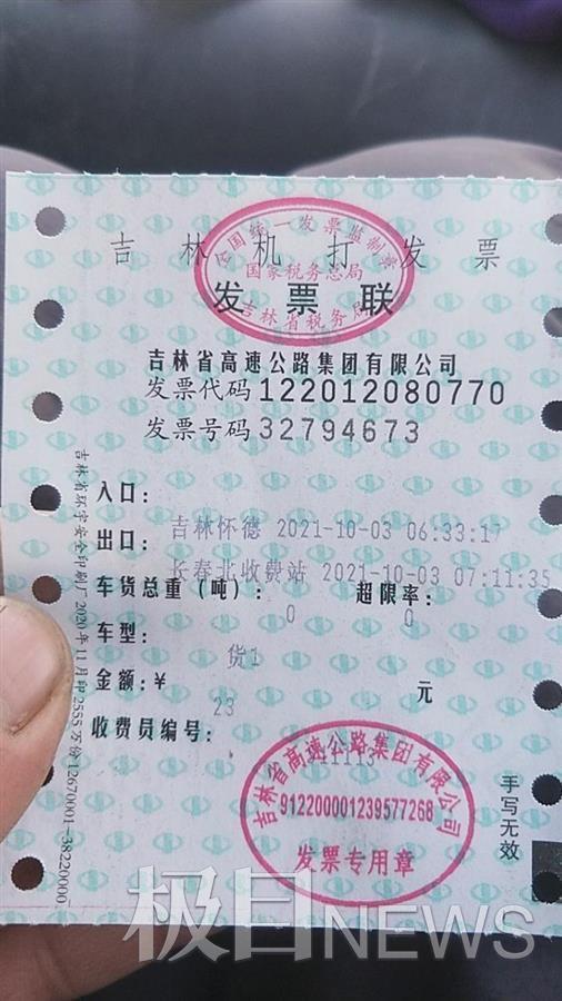 4日下午,当事司机刘先生告诉极目新闻记者,3日早上6时33分,他拉了一车蔬菜从吉林怀德去长春市区准备出售。在长春北收费站下高速时,因为他车上有芥菜,不能走绿色通道。经收费站工作人员确认后,他正常缴纳了23元过路费。