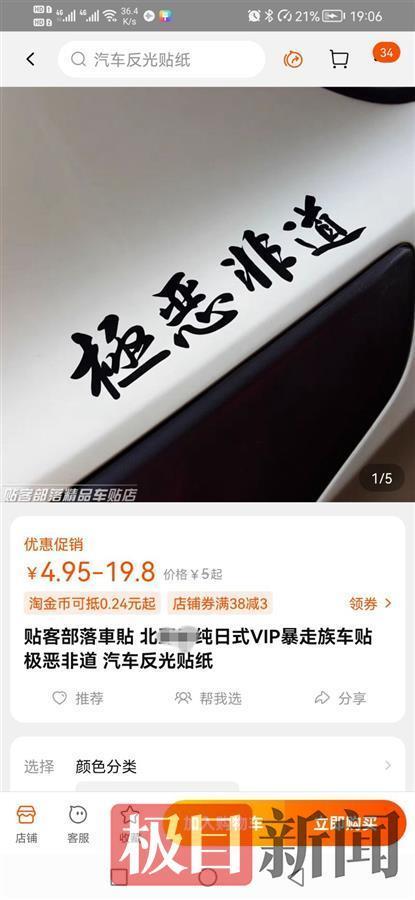 10月4日,极目新闻记者在一些网购平台上,并未看到有商家直接售卖此类车贴。记者又联系了几家车贴店,大部分商家都表示,并不售卖和定制类似车贴,但也有店铺可以制作。