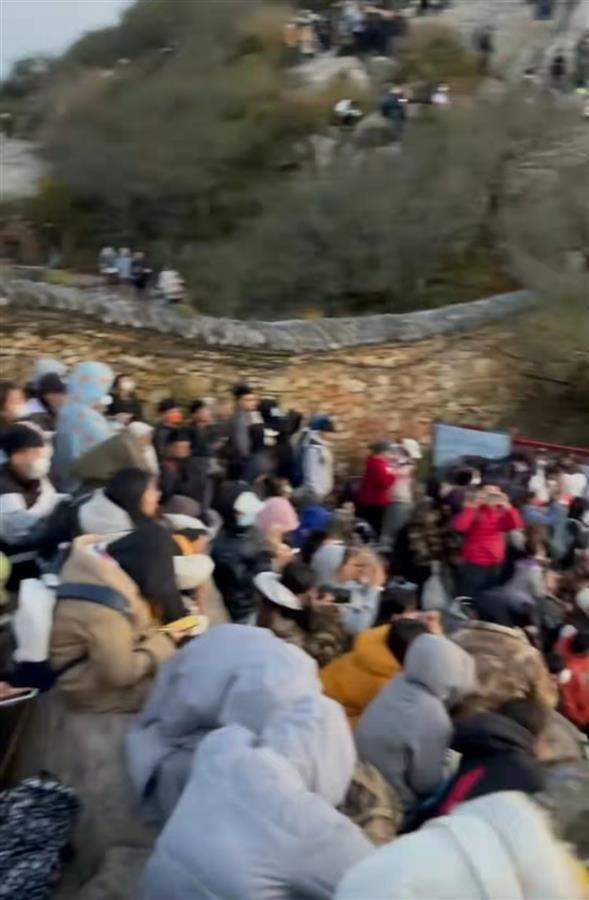 极目新闻此前报道,10月2日,陕西省宝鸡市太白山国家森林公园,数百人堵在索道进站口,站在寒风中瑟瑟发抖。工作人员称因出现大风和大雾,索道进行了降速运行,导致排队人员增多。