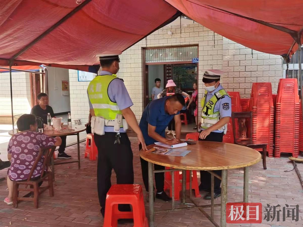 “金秋送安全”,交警进村湾,确保路畅人安。10月4日,极目新闻记者从武汉交管部门获悉,为了提高国庆佳节期间农村交通安全系数,武汉交警在20多个村镇组织210名路长和100名协保员,免费发放“小黄帽”1700余顶,把交通安全宣传送进村湾和乡间小道,把自觉拒绝酒驾的提示送到村民婚宴现场。村民们纷纷表示,提示很及时,坚决不酒驾。