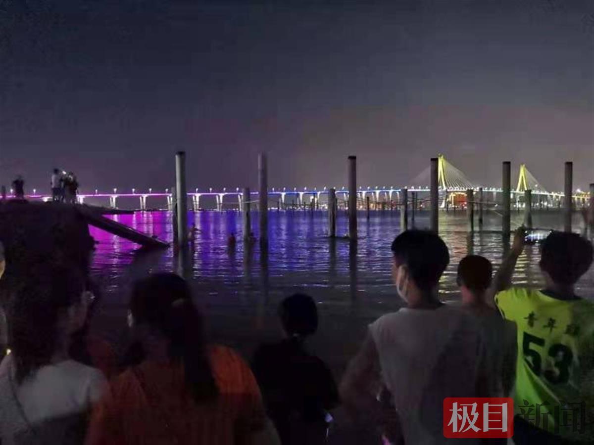 目击者江先生告诉极目新闻记者,事发时,他在附近的沙滩游玩,突然听到异响,走近了才知道是一游艇码头的引桥垮塌,有多人落水。他看到一名小伙从远处跑来,脱掉衣服和鞋下水救人,他们岸边的人也赶紧拨打报警电话。因为事发点很黑,他们纷纷打开手机的手电筒为救援人员照明。还有人在引桥边参与救援。落水的有不少中青年,还有小孩。