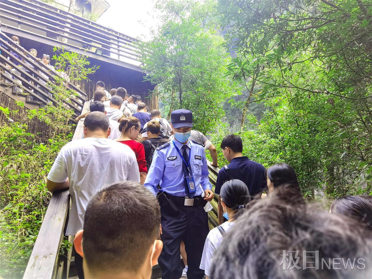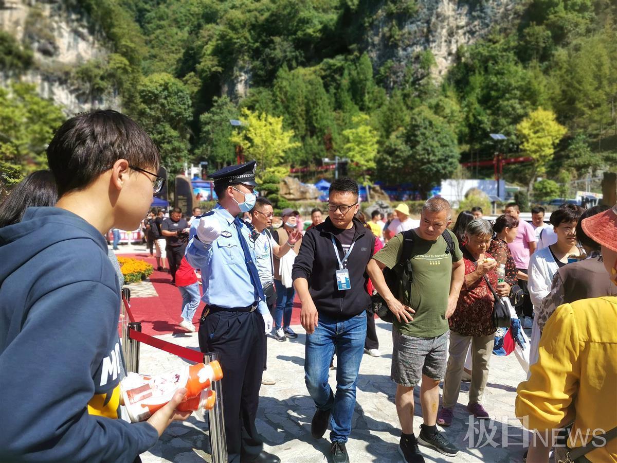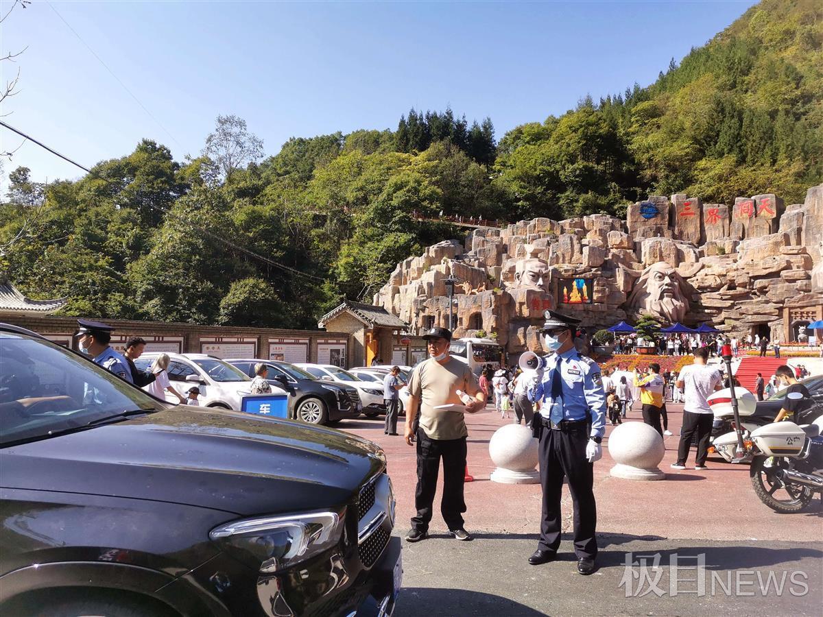 10月5日,湖北保康县五道峡、九路寨、尧治河等景区迎来国庆长假旅游高峰。保康县公安局各部门各警种联动协作,组织民警24小时驻守辖区各大旅游景区,全面排查各类安全隐患,并制定每日安保方案,确保景区秩序井然和游客出行安全。