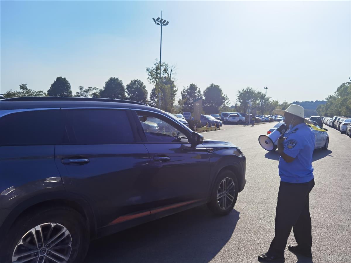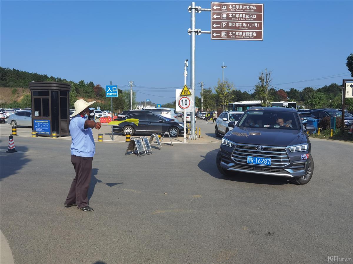 今年国庆长假,武汉市黄陂区木兰草原景区迎来客流高峰,对于景区保安吴利华、黄小龙来说,意味着更加忙碌。他们每天坚守岗位,服务广大游客,早上7点就来到停车场的进口处执勤,引导游客车场。