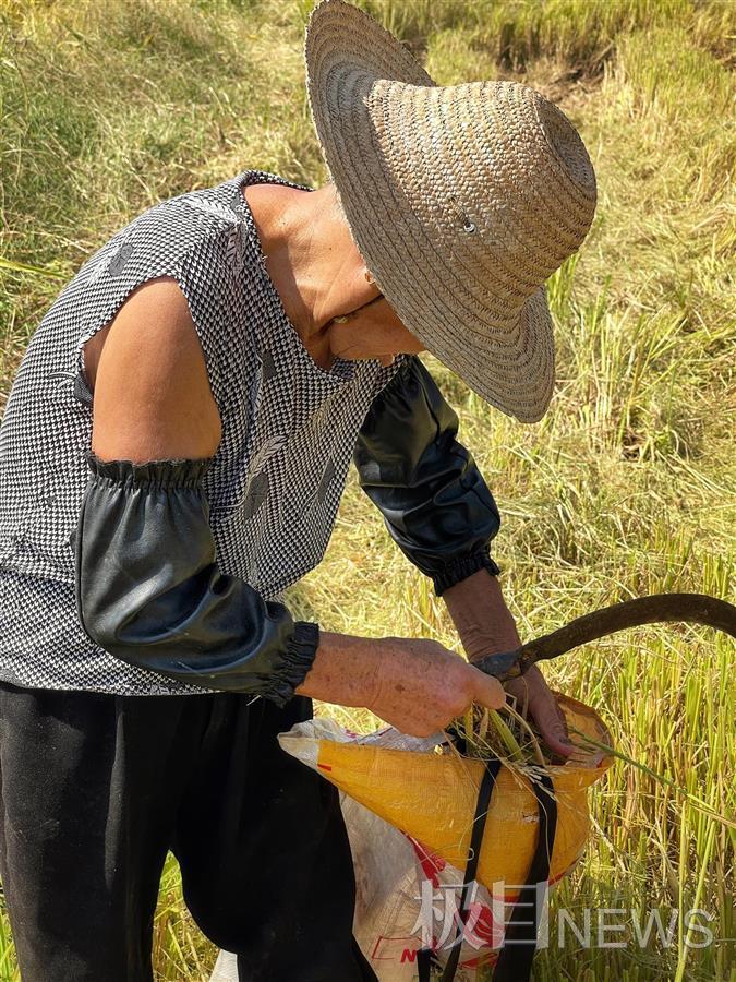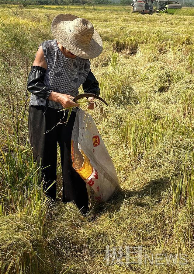 锄禾日当午,汗滴禾下土。谁知盘中餐,粒粒皆辛苦。10月6日,湖北鄂州市梁子湖区吴婆咀但村,一位老人正在田地里将收割机遗漏下的稻穗拾捡入袋。老人告诉记者,她今年78岁了,看到稻田里遗漏的稻穗她就心痛,她经历过苦日子,知道每一粒粮食真的是来之不易。