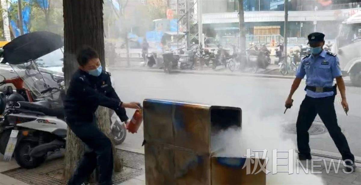10月6日上午,武汉市青山区街头一垃圾桶“发火”,警民携手快速扑灭明火,消除了安全隐患,周边市民纷纷点赞。