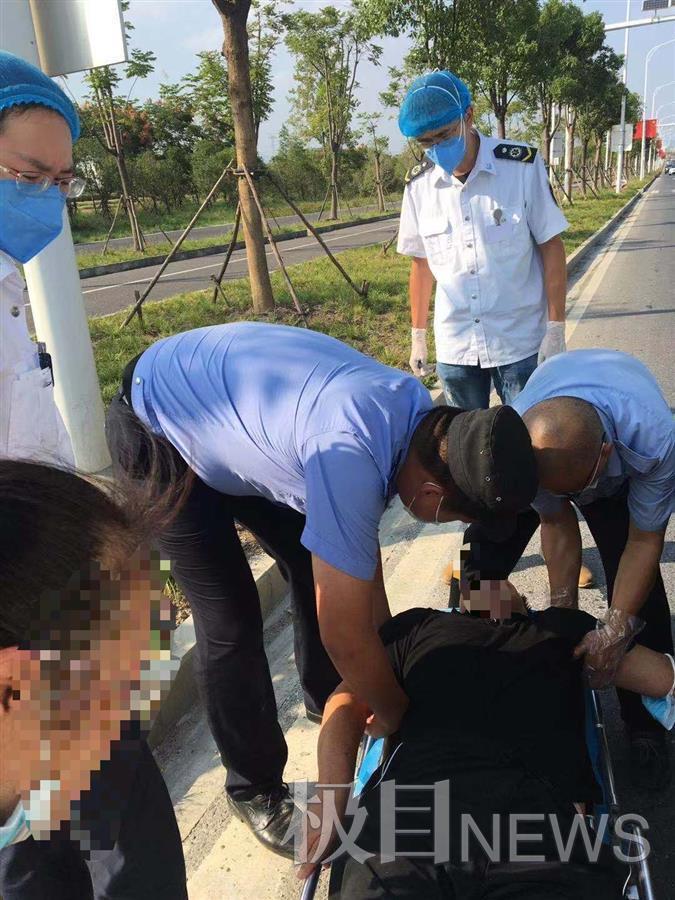 接到报警后,武汉市黄陂区木兰乡派出所值班民警柳浩迅速带领辅警刘国斌等人赶至现场,只见一男子在同行友人的帮扶下瘫坐在路边,男子精神恍惚且四肢无力,情况有些危险。民警来不及多想,迅速与同行群众将男子抬上警车,送往就近的木兰乡卫生院紧急救治。