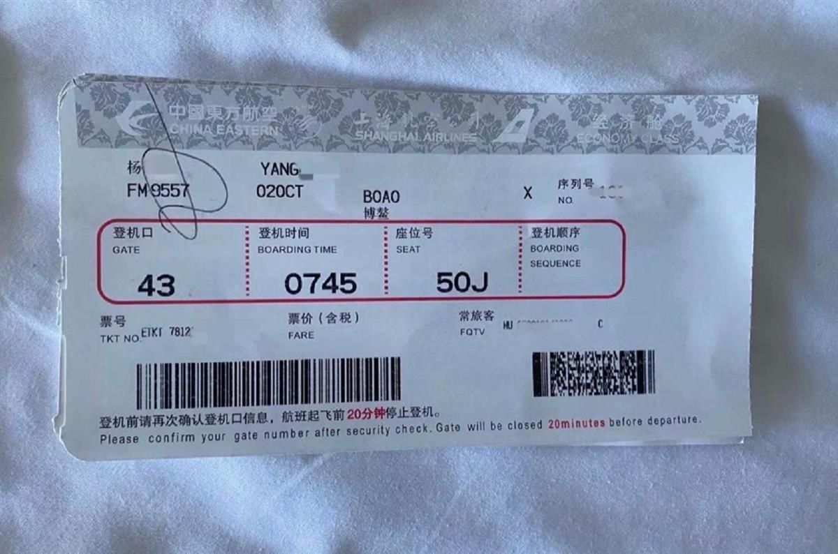 杨龙泉的机票(受访者提供)