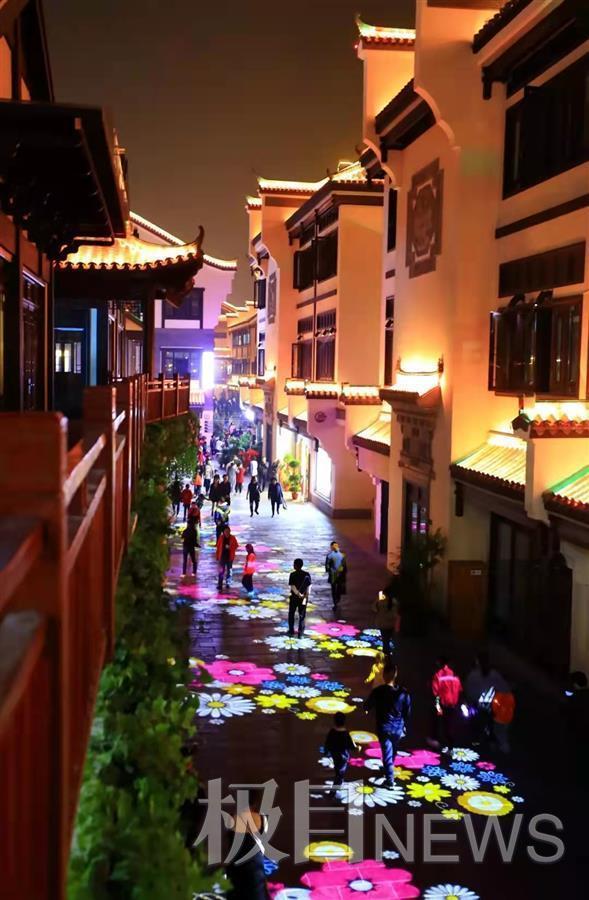 夜色中龙街游人如织