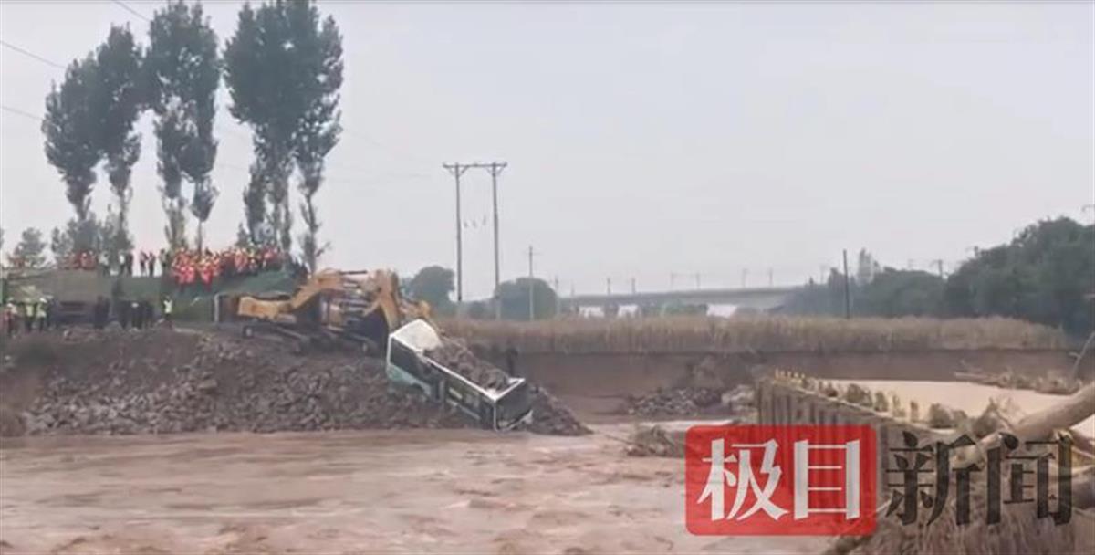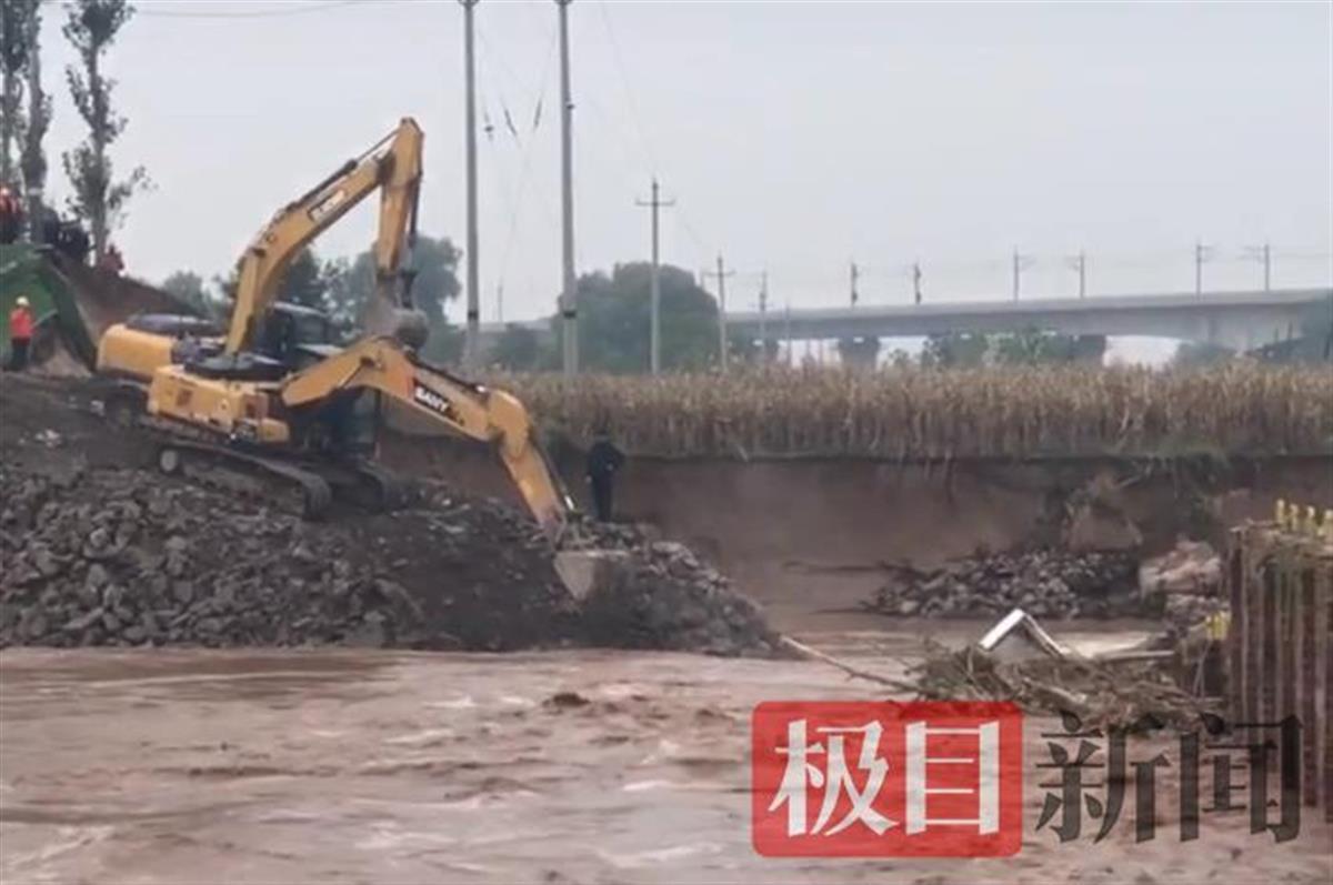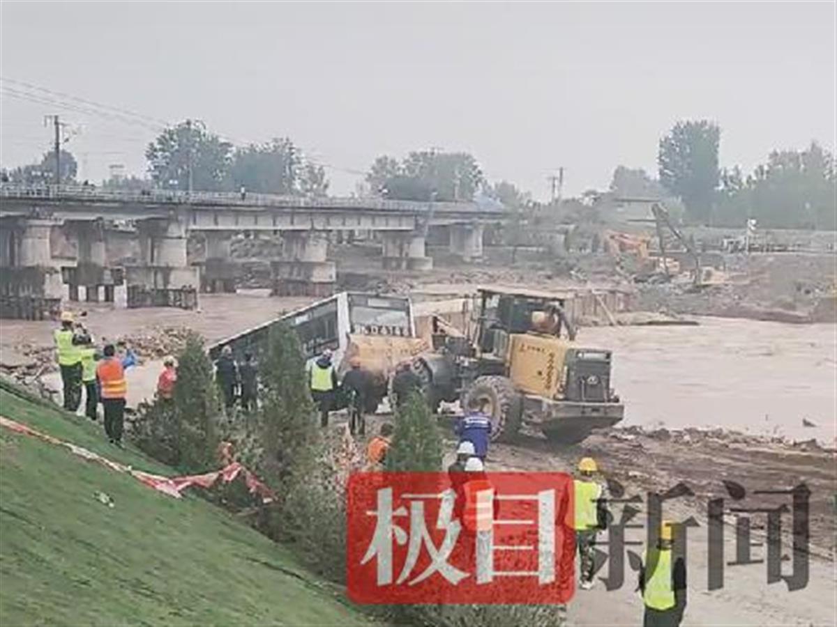 近日,受连日强降雨影响,祁县境内昌源河水位上涨,洪水冲毁路基,昌源河大桥垮塌,导致南同蒲铁路昌源河大桥铁路悬空,铁路中断运行。10月7日,一位知情人告诉极目新闻记者,7日上午,在被大水冲垮的昌源河大桥前,抗洪抢险人员将废弃的公交车以及卡车投入河水内,填堵决口。