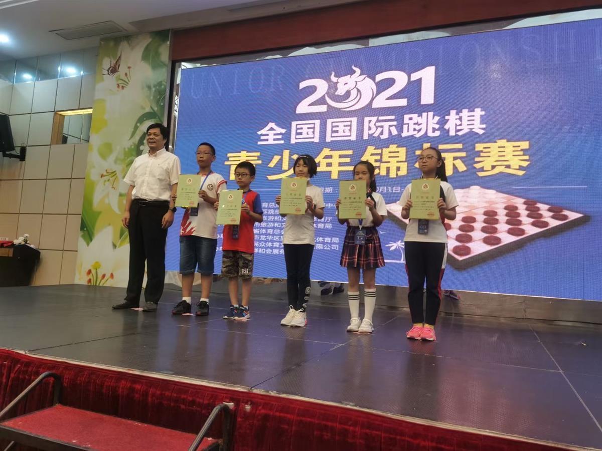 10月4日,2021年全国国际跳棋青少年锦标赛在海口落下帷幕。在9轮角逐中,武汉市光谷第八小学四(3)班学生王心乐以七胜一平一负的成绩,获得100格U11组女子冠军。