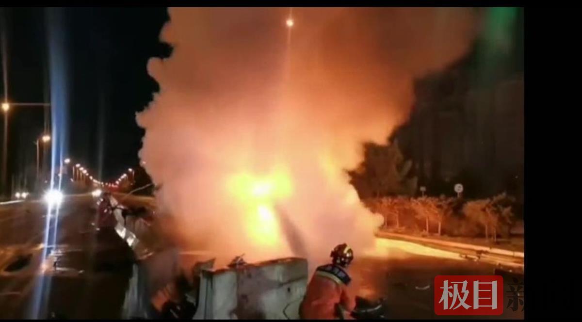 目击者李先生告诉极目新闻记者,事故发生在8日凌晨4时30分许,当时天还比较黑,事故发生时救护车和SUV由北向南,向市中心区方向行驶。救护车疑先撞在路中间水泥墩上后侧翻,并撞上正常行驶的SUV。