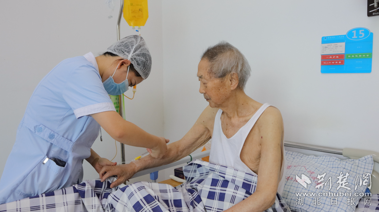 84岁的吴爹爹因病转入老年病科,在医生的治疗下,病情得到好转,不久将转入护理院养老状态。据爱心护理院护士长刘惠林介绍,老人生病了会启动医养结合机制,就在养老的房间住院,由医生和护士做好服务,等病好了并报销结账后,又恢复到养老常态。