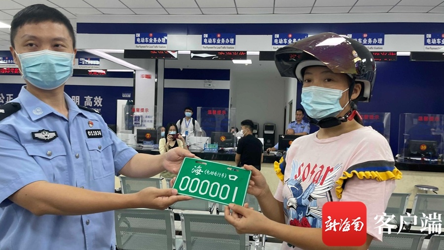 新海南客户端、南海网、南国都市报10月8日消息(记者 王燕珍 通讯员 林馨 特约记者 陈世清)根据《海口市公安局交通警察支队关于启动新国标电动自行车注册登记工作的通告》(海交规备字[2021]4号)规定,符合国家强制性标准《电动自行车安全技术规范》(GB17761-2018)并获得CCC认证,且通过“椰城市民云”APP或“椰城交警”微信公众号成功申领电子通行凭证的电动自行车,于10月8日起正式办理注册登记,当天现场上牌井然有序,海口一市民第一个领取到新国标电动车车牌“海口000001”。