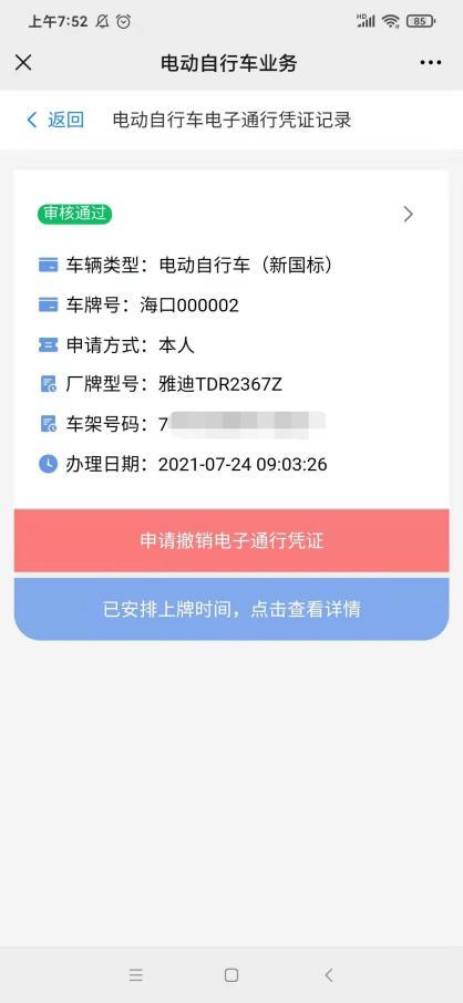 1、进入“椰城交警”微信公众号,在“办事大厅”找到“电动自行车凭证申领”,查看具体的上牌时间和地点