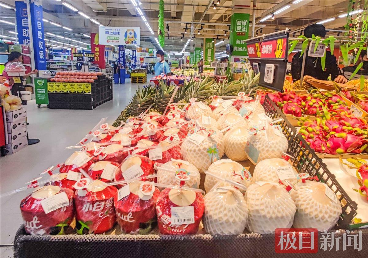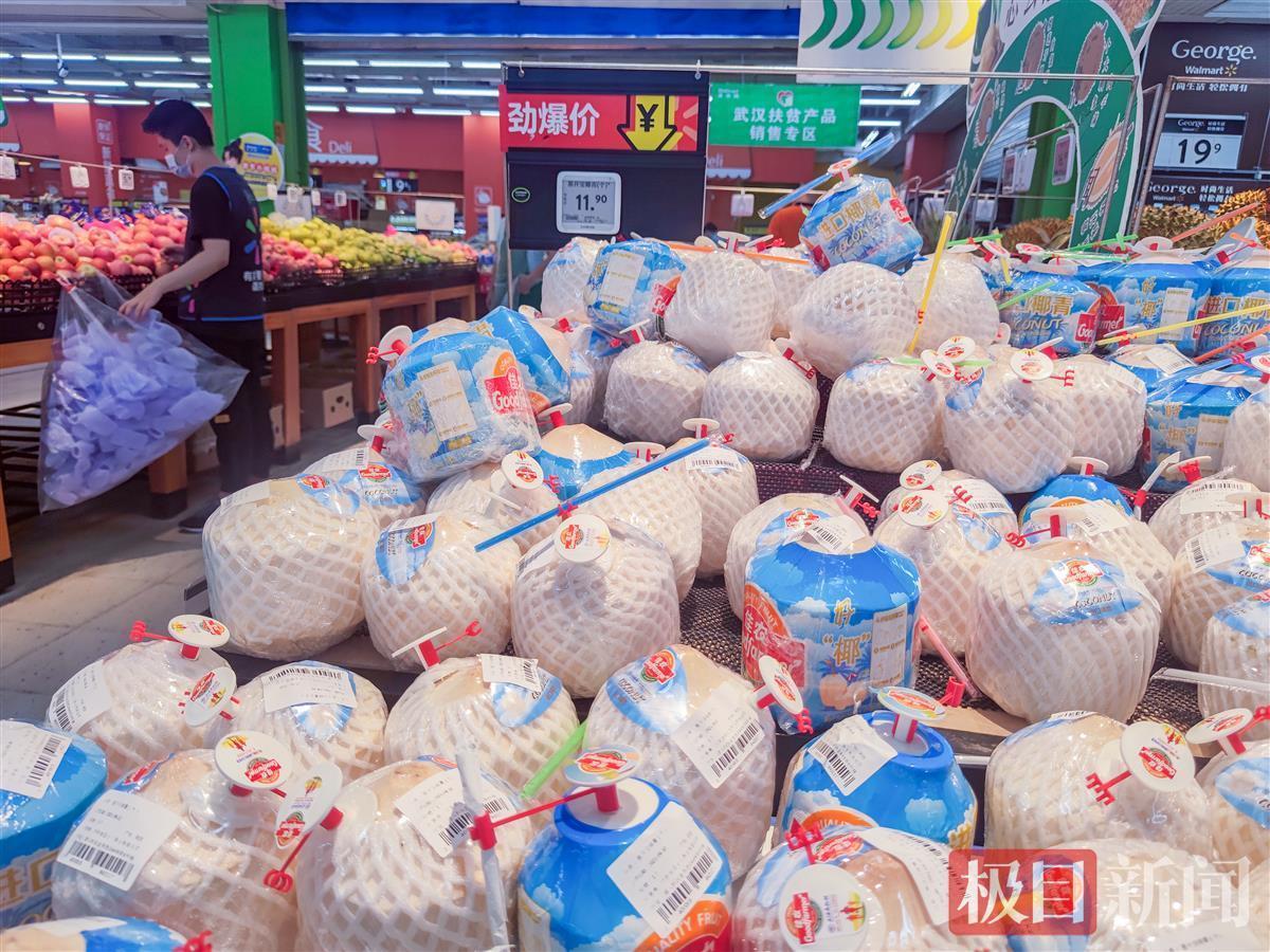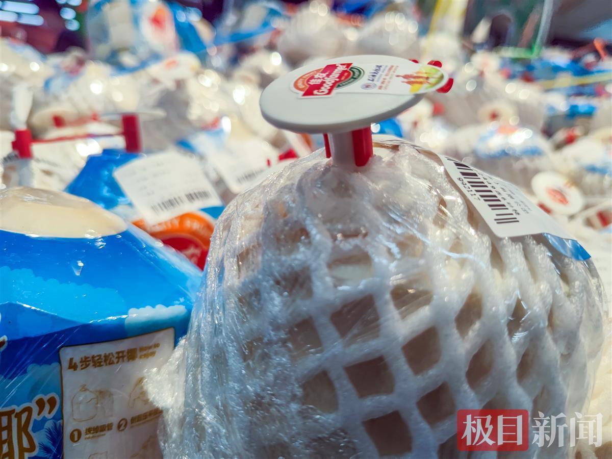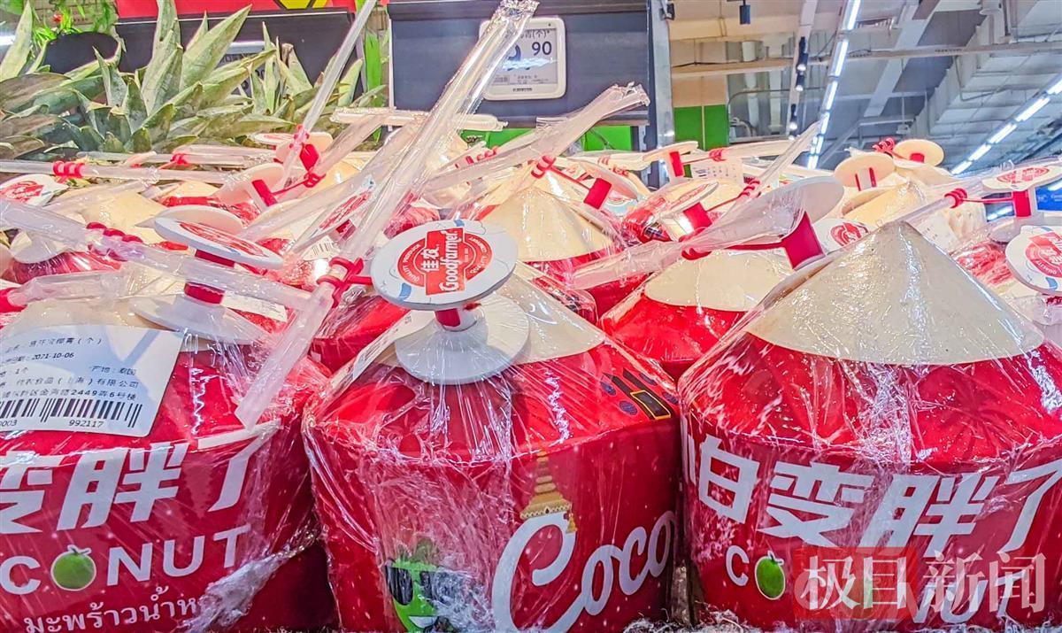 许多人喜欢喝椰子汁,但在超市买椰子,如何自己打开喝,是让许多消费者感到为难的事。10月8日,不少市民发现,在武汉几家商超新近上市的椰子,壳上带有一个自动开口的小机关,还配置有吸管,想要喝到椰汁,轻轻一拉一戳,就行了,让消费者感到很方便。