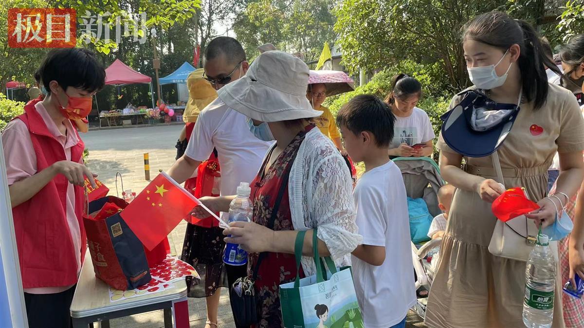 据介绍,为了提供优质和周到的游览服务,营造欢乐祥和的节日氛围,风景区在各景点、停车场等公共场所,悬挂国旗、插放彩旗、播放庆祝视频,并为游客发放国庆主题旗帜和贴纸。同时,结合国庆特点,推出节日优惠政策,对于满足相应条件的游客提供免票优惠,受到市民欢迎。