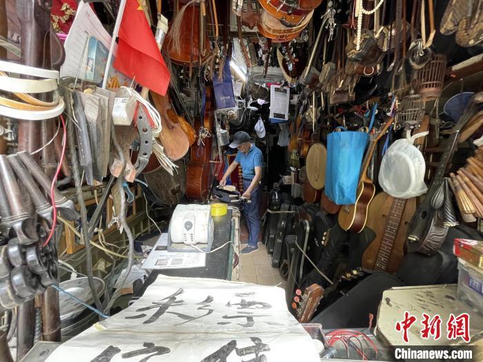 中新网上海10月8日电 (记者 康玉湛 徐银)上海黄浦区复兴路肇周路老城厢堪称是一大宝藏街区,各色好吃、好玩、好用的大小店铺散落其中。73岁的冯顺成的“小广东乐器修理铺”便是其中之一。在这间“螺蛳壳里做道场”的铺子里,他坚持修了22年的琴。