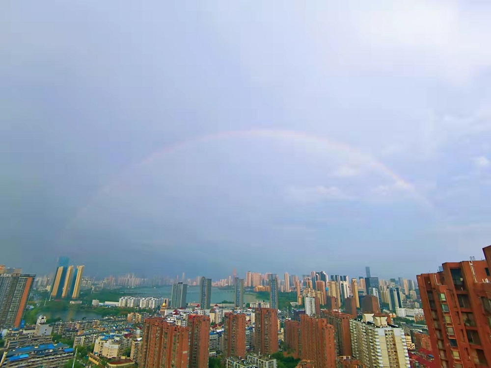 在城市摄影队的各个微信群里,彩虹、火烧云瞬间刷屏。摄影师们抢着在第一时间分享眼前的美景,“没拍到彩虹,却追到了彩云,这片火烧云真是太美了”。不少人正在下班途中,在公交车上,在等红绿灯的间隙,甚至骑自行车的人们,都停下脚步,驻足拍下美景。摄影师三浪说道:“忙碌了一天,傍晚遇到了彩虹和粉红色的火烧云,疲惫一扫而空。一定要多抬头看天,武汉天空总是带给我们太多惊喜。”