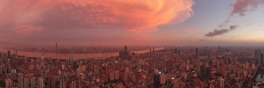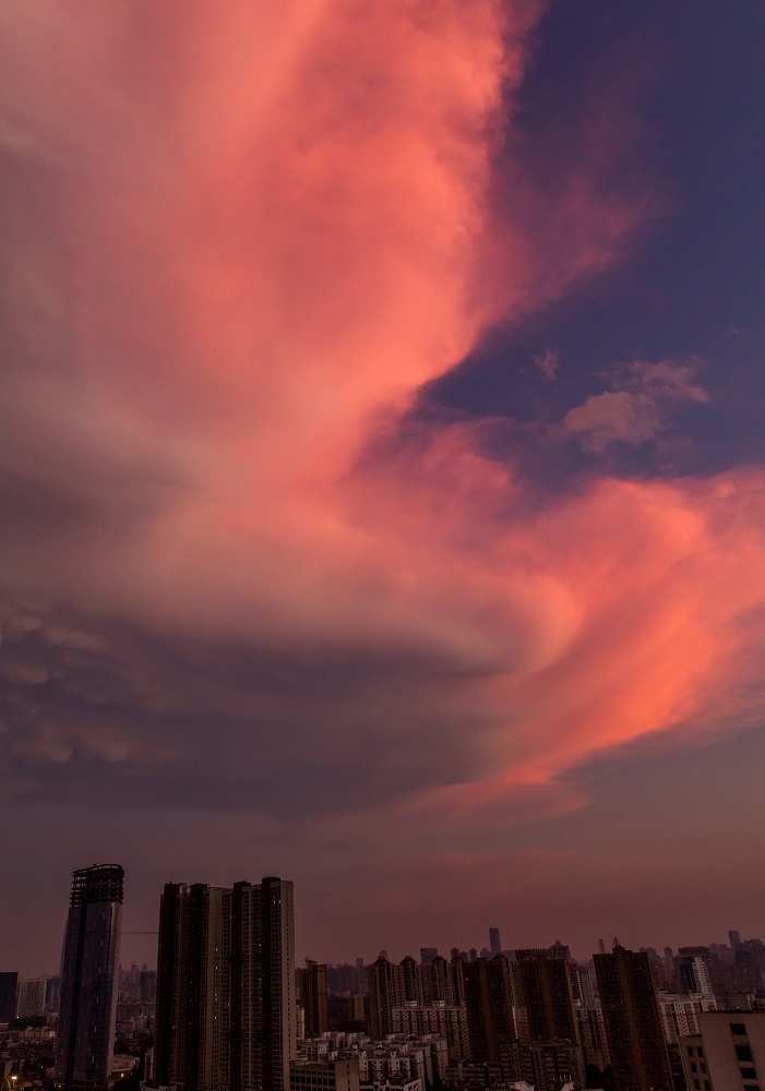 城市上空火烧云。长江日报城市摄影队 李军 摄