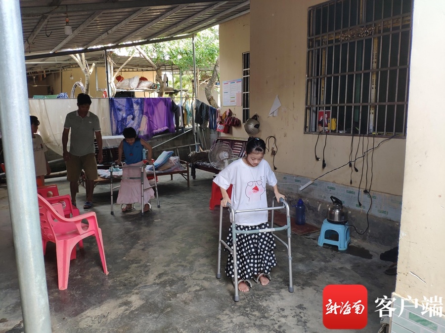巡诊中,患佝偻病的两姐弟术后康复达预期,助行器辅助行走顺畅。受访者提供